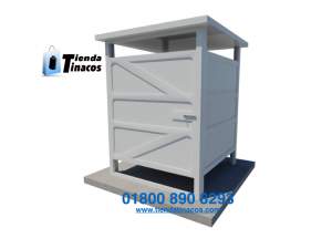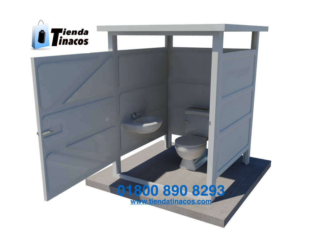 CASETA CUADRADA DE 1.20 X 1.20 Y ALTURA DE 2.10 m. INCLUYE UN LAVAMANOS, AMBOS FABRICADOS EN RESINA POLIESTER Y FIBRA DE VIDRIO.