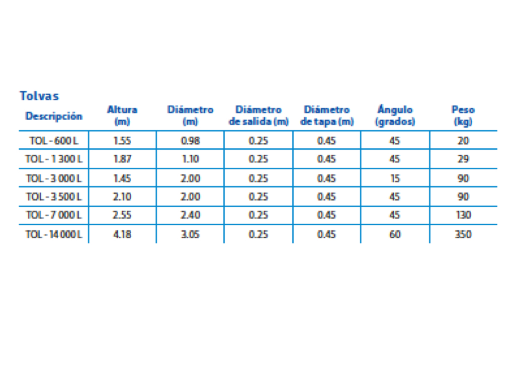 TOLVA ROTOPLAS DE 7000 L ROTOPLAS CON FONDO CONICO, MEDIDAS: ALTURA 2.55 m DIAMETRO 2.40 m DIAMETRO DE SALIDA 0.25 m DIAMETRO DE TAPA 18" ANGULO 45° PESO 130 KG.